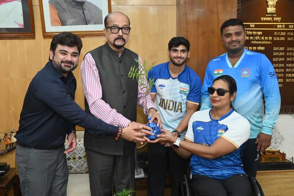 रायपुर राज्यपाल रमेन डेका से आज यहां राजभवन में अर्जुन पुरूस्कार से सम्मानित भारतीय पैरा डोंगी एथलीट श्रीमती प्राची यादव ने सौजन्य भेंट की। इस अवसर पर मनीष कोरव, खिलाड़ी विपिन कुर्मी, कोच प्रशांत सिंह रघुवंशी, रोहित काले, अमरजीत छाबड़ा भी उपस्थित थे।
