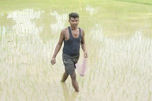 बृजपाल अपनी पत्नी के साथ मिलकर हर दिन खेत में काम करते हैं। दोनों मिलकर फसल की देखरेख कर रहे हैं। आज बृजपाल अपने खेत मे लगाए धान की फसल में डीएपी और यूरिया का छिड़काव किए है। जिससे फसलों का उत्पादन अच्छा हो। बृजपाल कहते हैं खाद-बीज समय पर मिलने से खेती करने में आसानी हुई है।