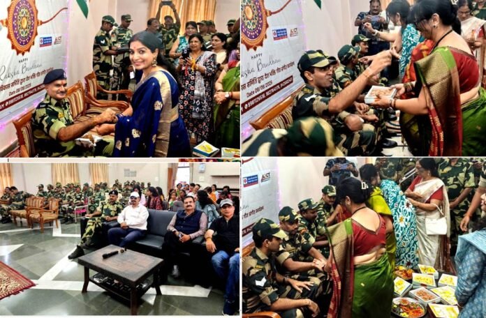 रक्षाबंधन के पावन अवसर पर शौर्य फाउंडेशन, भोपाल ने सीमा सुरक्षा बल (BSF) के वीर जवानों को समर्पित एक विशेष कार्यक्रम “बहनों की राखी सरहद के रखवालों के नाम” का आयोजन बीएसएफ, भोपाल परिसर में बड़े उत्साह और गरिमामय वातावरण में किया। यह भावनाओं और देशभक्ति से ओतप्रोत आयोजन सभी के लिए अविस्मरणीय रहा। कार्यक्रम में 50 से अधिक बीएसएफ जवानों ने भाग लिया, जबकि 30 से अधिक बहनों ने इन वीर सपूतों की कलाई पर राखी बांधकर उन्हें मिठाई खिलाई।