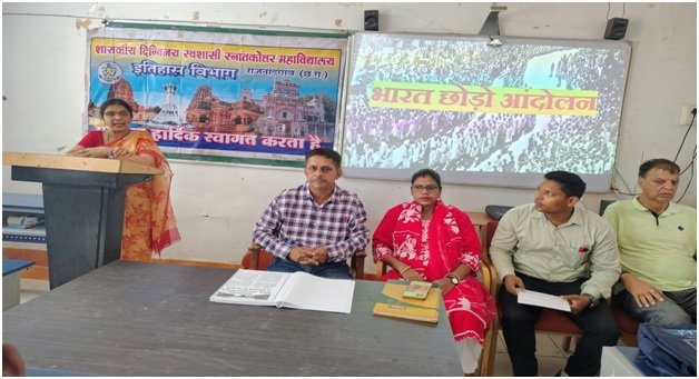विभागाध्यक्ष डॉ. शैलेन्द्र सिंह ने कहा कि 07 अगस्त 1942 का कांग्रेस अधिवेशन बंबई में प्रारंभ हुआ, 08 अगस्त को महात्मा गांधी ने समिति के सामने अंग्रेजों भारत छोड़ों आंदोलन का ऐतिहासिक प्रस्ताव रखा। इस दौरान गांधीजी ने 70 मिनट तक भाषण दिया और ‘‘करो या मरो‘‘ का नारा जनता को दिया।