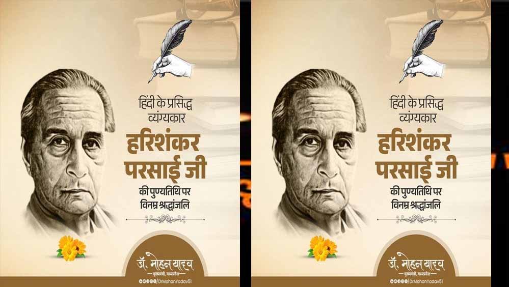 मुख्यमंत्री डॉ. मोहन यादव ने साहित्य की व्यंग्य विधा के माध्यम से समाज की विसंगतियों पर गहरी चोट करने वाले प्रख्यात साहित्यकार श्री हरिशंकर परसाई की जयंती पर उनका स्मरण किया है। मुख्यमंत्री डॉ. यादव ने कहा कि परसाई जी की ‘भोलाराम का जीव’ और ‘सदाचार का ताबीज’ जैसी कालजयी रचनाएं सामाजिक चेतना और मानवीय मूल्यों का मार्ग प्रशस्त करती रहेंगी।