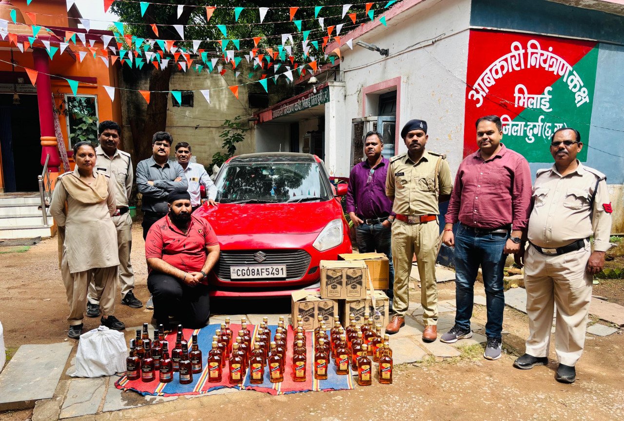 रायपुर, दुर्ग जिले के आबकारी विभाग की वृत्त-भिलाई क्रमांक-03 की टीम ने आज प्रातः गश्त के दौरान प्राप्त सूचना पर ने त्वरित विधिवत कार्रवाई करते हुए आरोपी मनदीप सिंह भाटिया, निवासी नेहरू नगर चौक, भिलाई के कब्जे से 51 हजार रूपए मूल्य की अवैध रूप से परिवहन की जा रही मदिरा और स्विफ्ट कार जब्त की। इस मामले में आरोपी मनदीप सिंह भाटिया को भी गिरफ्तार किया गया।