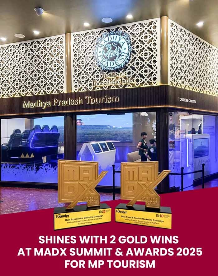 अतुल्य भारत का दिल मध्यप्रदेश, ऐतिहासिक विरासत, समृद्ध संस्कृति और प्राकृतिक सौंदर्य के लिए ही नहीं, बल्कि नवाचार और आधुनिक मार्केटिंग रणनीतियों के लिए भी जाना जा रहा है। गोवा में आयोजित प्रथम मेडएक्स समिट एवं अवॉर्ड्स 2025 में किडज़ानिया इंडिया के ‘एमपी टूरिज्म एक्सपीरियंस सेंटर’ को दो श्रेणियों में प्रतिष्ठित गोल्ड अवॉर्ड्स से सम्मानित किया गया। बेस्ट एक्सपीरिएंशल मार्केटिंग कैंपेन और बेस्ट ट्रैवल एंड टूरिज्म मार्केटिंग कैंपेन की श्रेणी में ये गोल्ड अवॉर्ड्स प्राप्त हुए।