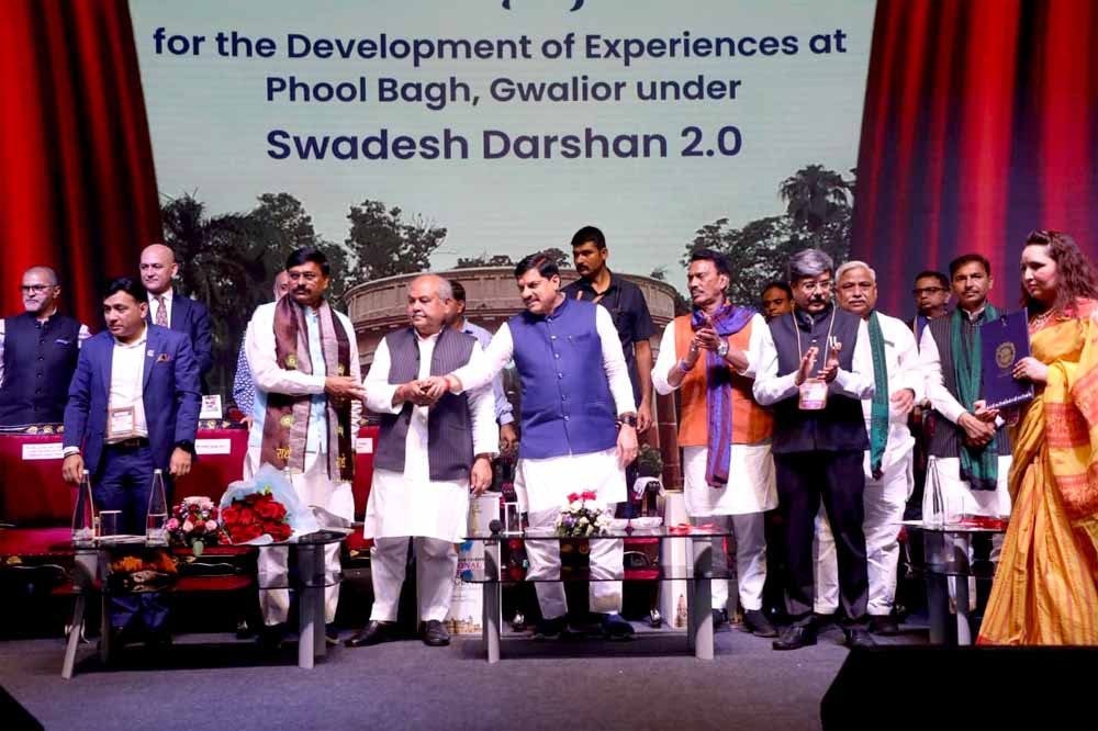 मुख्यमंत्री डॉ. यादव ने ग्वालियर–चंबल क्षेत्र के पर्यटन को बढ़ावा देने एवं विरासतों के संरक्षण के लिए विकास कार्यों का शिलान्यास एवं विमोचन किया। स्वदेश दर्शन 2.0 योजना के तहत ग्वालियर में ऐतिहासिक फूलबाग क्षेत्र में 17 करोड़ रूपये के विकास कार्यों और राजा मानसिंह तोमर संगीत एवं कला विश्वविद्यालय में 58.46 करोड़ रूपये के विकास कार्यों का शिलान्यास किया। मध्यप्रदेश पर्यटन बोर्ड के डेलबर्टो संस्था के सहयोग से प्रदेश की पारंपरिक शिल्प एवं बुनाई कला को बढ़ावा देने के लिए शिल्पकारों के उत्पादों के Craftgroom ई-कॉमर्स प्लेटफॉर्म और ग्वालियर किले के संरक्षण, सौंदर्यीकरण और पर्यटन को बढ़ावा देने के उद्देश्य से तैयार की गई कार्ययोजना का विमोचन किया गया।