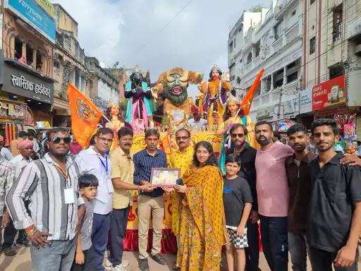 Rajnandgaon, संस्कारधानी की गणेश पर्व की गौरवशाली ऐतिहासिक परंपरा में श्री बागेश्वर मंदिर धर्मार्थ ट्रस्ट द्वारा विसर्जन झांकियों का श्री गणेश पूजाए पुष्पवर्षा व मंदिर का प्रतीक चिन्ह देकर स्वागत सम्मान किया गया। मंदिर ट्रस्ट के सेवक आयोजन अध्यक्ष पंकज गुप्ताए कार्यण्अध्यक्ष सूरज गुप्ताए विजय गुप्ताए भावेश अग्रवालए राकेश ठाकुरए सौरभ खंडेलवाल ने बताया कि बागेश्वर मंदिर धर्मार्थ ट्रस्ट संलग्न सेवा समितियों द्वारा धार्मिकए सामाजिकए सार्वजनिक सेवा सम्मान की श्रृंखला में नगर में प्रसिद्ध श्री गणेश विसर्जन झांकियों के सम्मान का आयोजन प्रथम बार आयोजित किया गया। ट्रस्ट के गंज लाईन स्थित लगाए गए स्वागत सम्मान मंच में नगर की धार्मिक देशभक्तिए छत्तीसगढ़ी लोक संस्कृति पर आधारित लगभग तीन दर्जन आकर्षक मूविंगए लाइटिंगए आर्च से सुसज्जित झांकियों के मंच के सामने सर्वप्रथम झांकियों में विराजित श्री गणेश जी की पुष्प अर्पित कर दुपट्टा ओढ़ाकर पूजन किया गया।