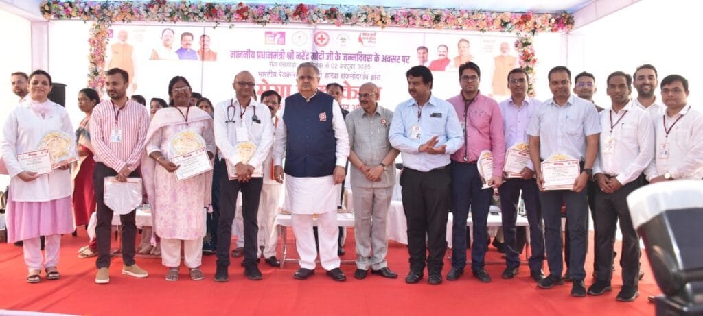 प्रदेश अध्यक्ष भारतीय रेडक्रास सोसायटी तोमन साहू ने प्रधानमंत्री नरेन्द्र मोदी के जन्मदिवस पर कोटि-कोटि बधाई दी। भारतीय रेडक्रास सोसायटी द्वारा आयोजित नि:शुल्क वृहद स्वास्थ्य शिविर के आयोजन के लिए बधाई दी। उन्होंने कहा कि सेवा ही हमारा धर्म है और सेवा कार्य करने का प्रयास किया जा रहा है, प्रदेश को आगे बढ़ाना है। पद्मश्री डॉ. पुखराज बाफना ने कहा कि प्रधानमंत्री नरेन्द्र मोदी दृढऩायक, समर्पित राष्ट्रभक्त एवं प्रेरणास्रोत है। यह कामना है कि वह दीर्घायु रहे। उन्होंने कहा कि भारतीय रेडक्रास सोसायटी विभिन्न क्षेत्रों में मानव सेवा के लिए समर्पित भाव से कार्य कर रही है। शिविर के माध्यम से जनसामान्य को आज इसका लाभ मिला है।