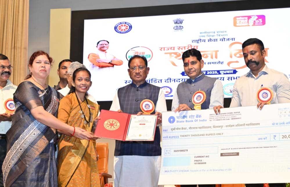 मुख्यमंत्री विष्णु देव साय ने इस अवसर पर राष्ट्रीय सेवा योजना की पत्रिका ‘समर्पण’ और विकसित भारत क्विज कार्यक्रम के पोस्टर का विमोचन किया। उन्होंने राष्ट्रीय सेवा योजना अंतर्गत उत्कृष्ट कार्य कर रही संस्थाओं, अधिकारियों और स्वयंसेवकों को सम्मानित भी किया।