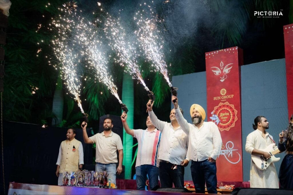 डिजिटल लाइट की जगमगाहट और सिलेब्रिटी बैंड काफ़िला ग्रुप की मधुर म्यूजिक की थाप पर सजे-धजे युवक-युवतियों ने गरबा के शानदार पैंतरे दिखाकर दर्शकों का दिल जीत लिया। देर रात तक पंडाल में गरबे की गूंज और भक्तिमय माहौल छाया रहा।