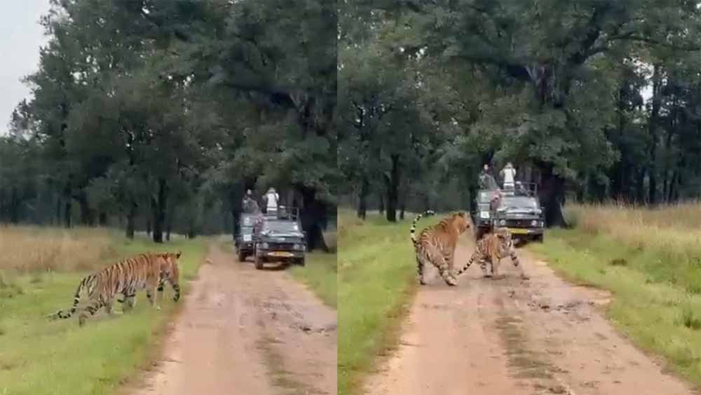 यह पूरा नजारा बुधवार को कान्हा टाइगर रिजर्व के मुक्की जोन में रिकार्ड किया गया। यह वही क्षेत्र है, जहां दो अक्टूबर को दो बाघों के बीच संघर्ष हुआ था। बताया गया कि नर बाघ टी-125 और बाघिन टी-106 एक साथ दिखाई दिए।