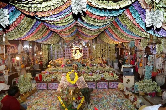 दीपोत्सव के पहले दिन यानी आज धनतेरस से मंदिर की सजावट को भक्त निहार सकते हैं। संभवत: यह देश का पहला ऐसा मंदिर है, जो पांच दिनों तक भक्तों द्वारा अर्पित आभूषण और नोटों से सजा रहता है
