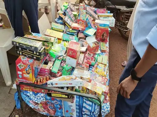 वह बिना किसी लाइसेंस और सुरक्षा इंतजाम के खुले में पटाखे बेच रहा था। पुलिस ने मौके से स्टैंडर चकरी, स्काई शॉट, टाइगर बम, फूलझड़ी, ड्रैगन बम, माचिस पटाखा, हेलीकॉप्टर पटाखा, शिम्बा बम, लड्ड सहित 23 तरह के पटाखों के पैकेट जब्त किए, जिनकी कीमत 10,375 रुपये है। पुलिस ने बताया कि गोपीराम के पास पटाखा बेचने का कोई लाइसेंस नहीं था। इसलिए उसके खिलाफ बीएनएस की धारा 288 और विस्फोटक अधिनियम की धारा 9(ख), (1)(ख) के तहत मामला दर्ज किया गया है। पुलिस आगे की जांच कर रही है।