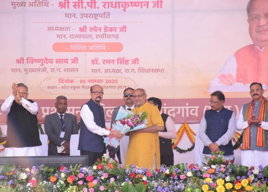उपराष्ट्रपति सीपी राधाकृष्णन ने कहा कि राजनांदगांव जिला प्रशासन की ओर से एक लाख से अधिक महिलाओं को स्वसहायता समूह बिहान से जोड़ा गया है। राजनांदगांव माँ बम्लेश्वरी देवी का धाम है, जो महिला सशक्तिकरण एवं उन्नयन के लिए एक मिसाल है। यहां महिलाओं की विकास गाथाओं के दृष्टिकोण से राजनांदगांव जिला एक उदाहरण है। उन्होंने कहा कि लखपति दीदी के साहस, परिश्रम एवं दृढ़ निश्चय की प्रशंसा करता हूं। वे रूकेगीं नहीं और लखपति दीदी से करोड़पति दीदी बनेगी। उन्होंने कहा कि राजनांदगांव जिले में सशक्त महिलाएं है, जो आर्थिक एवं राजनीतिक दृष्टि से परचम लहरा रही है। यहां पंच, सरपंच विकास के विभिन्न क्षेत्रों में अपना योगदान दे रही है। महिलाएं न केवल घर का नेतृत्व कर रही है, बल्कि प्रशासन में कार्य कर रही है तथा राजनीतिक परिवर्तन के साथ ही भविष्य के नेतृत्वकर्ता को प्रेरणा दे रही है। उन्होंने कहा कि प्रधानमंत्री की दृष्टि एवं गृह मंत्री के दृढ़ निश्चय से तथा सुरक्षा बलों के अथक प्रयासों से छत्तीसगढ़ में नक्सलवाद खात्मे की ओर है।