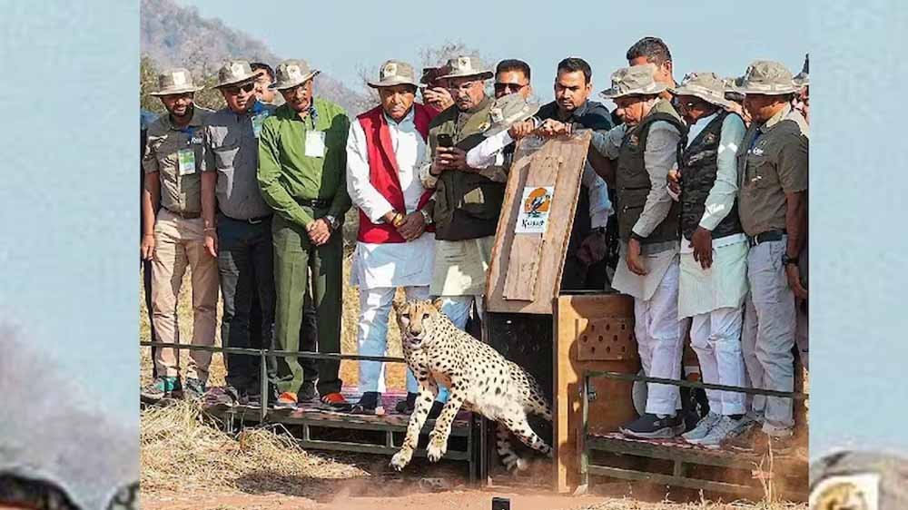 अंतर्राष्ट्रीय चीता दिवस पर मुख्यमंत्री मोहन यादव ने गुरुवार को कूनो नेशनल पार्क में बाड़े से तीन चीतों को खुले जंगल में रिलीज किया। इनमें दक्षिण अफ्रीका से आई मादा चीता वीरा और उसके दो शावक शामिल हैं। वीरा ने फरवरी 2025 में दो शावकों को जन्म दिया था, जो अब करीब नौ माह के हो चुके हैं। तीनों अब खुले जंगल में स्वतंत्र रूप से विचरण करेंगे। खुले जंगल में पहले 16 चीते थे, वीरा और उसके दो शावकों के जुड़ने से यह संख्या बढ़कर 19 हो गई है। वर्तमान में कूनो में कुल 29 चीते हैं। 8 वयस्क और 21 शावक। इसके अलावा मंदसौर-नीमच के गांधी सागर अभयारण्य में भी 3 चीते मौजूद हैं।