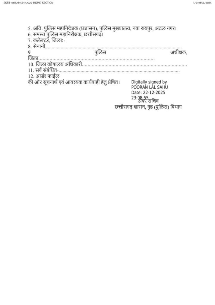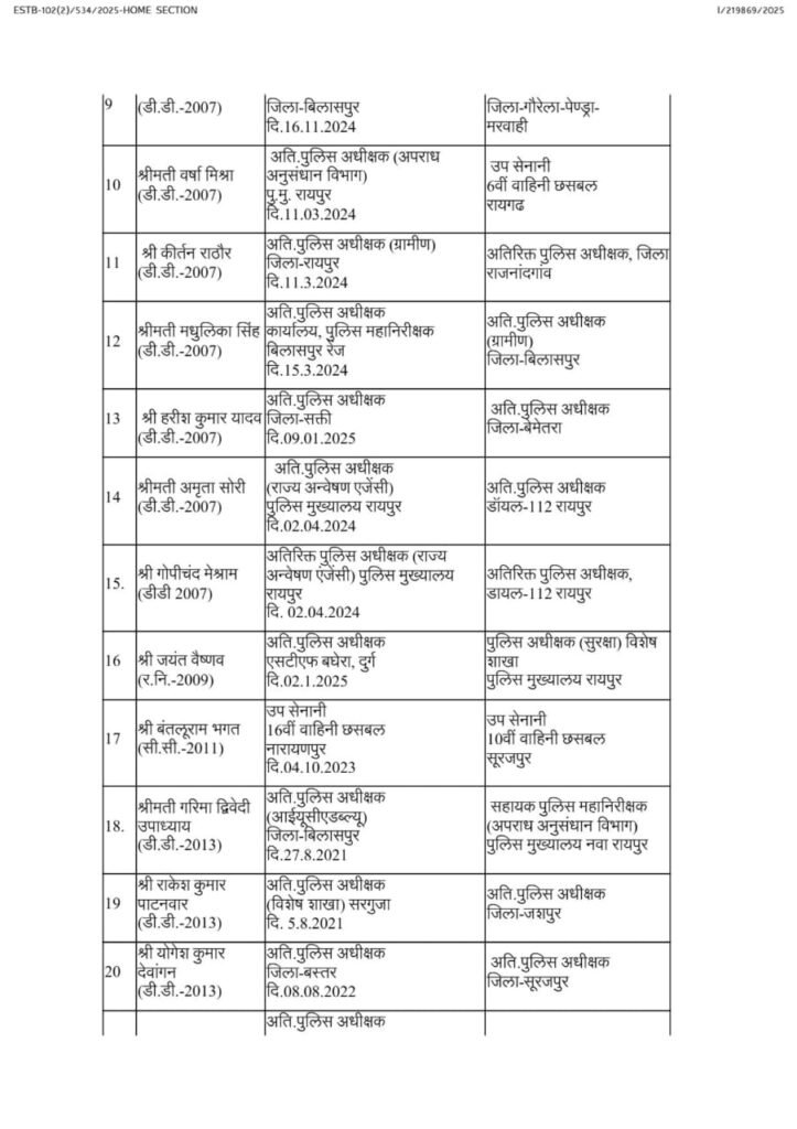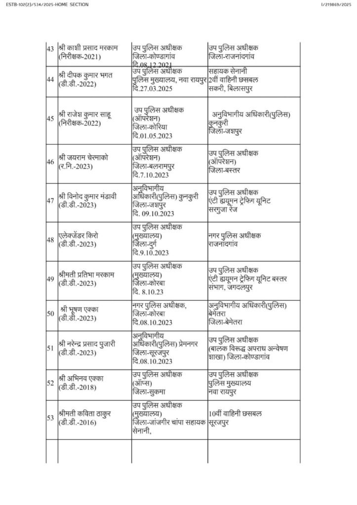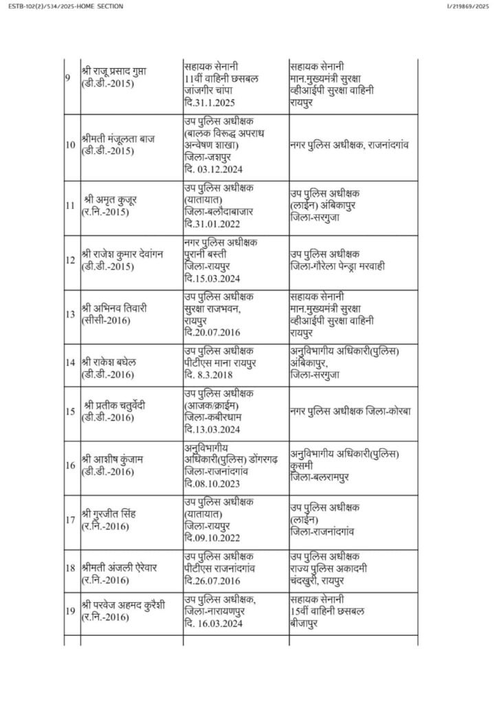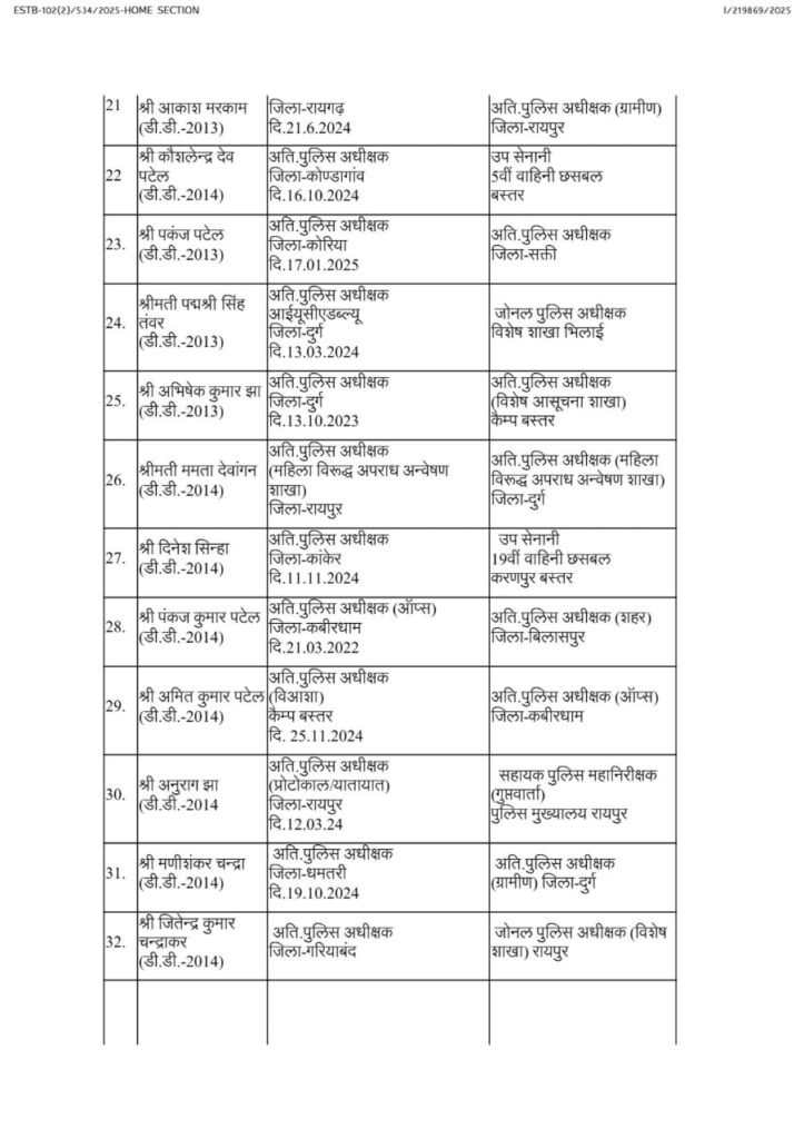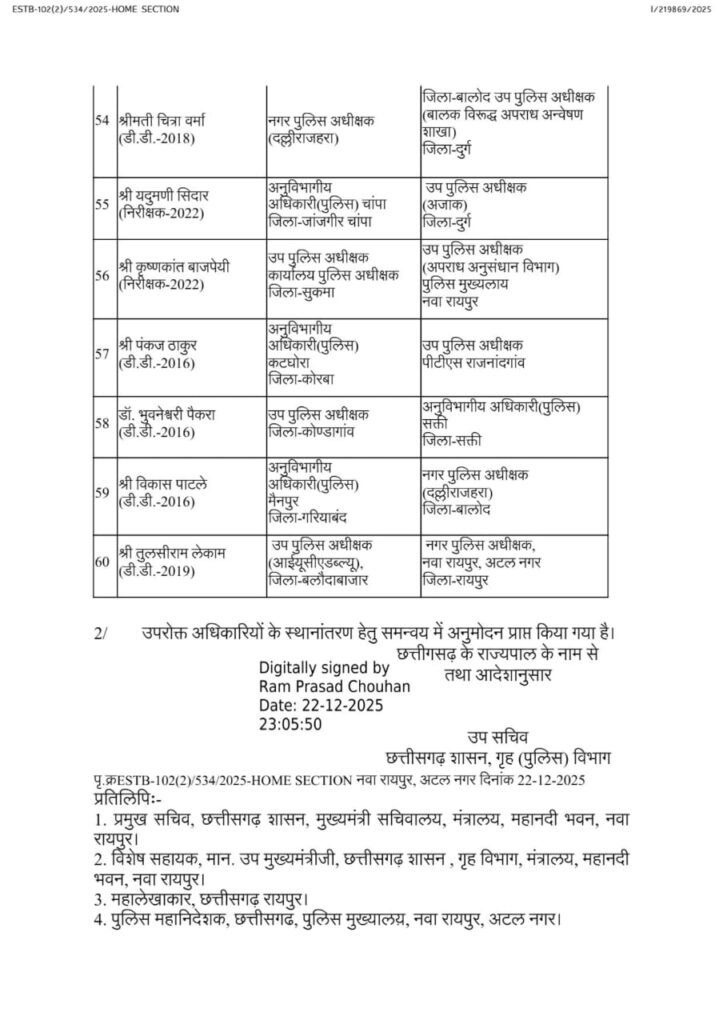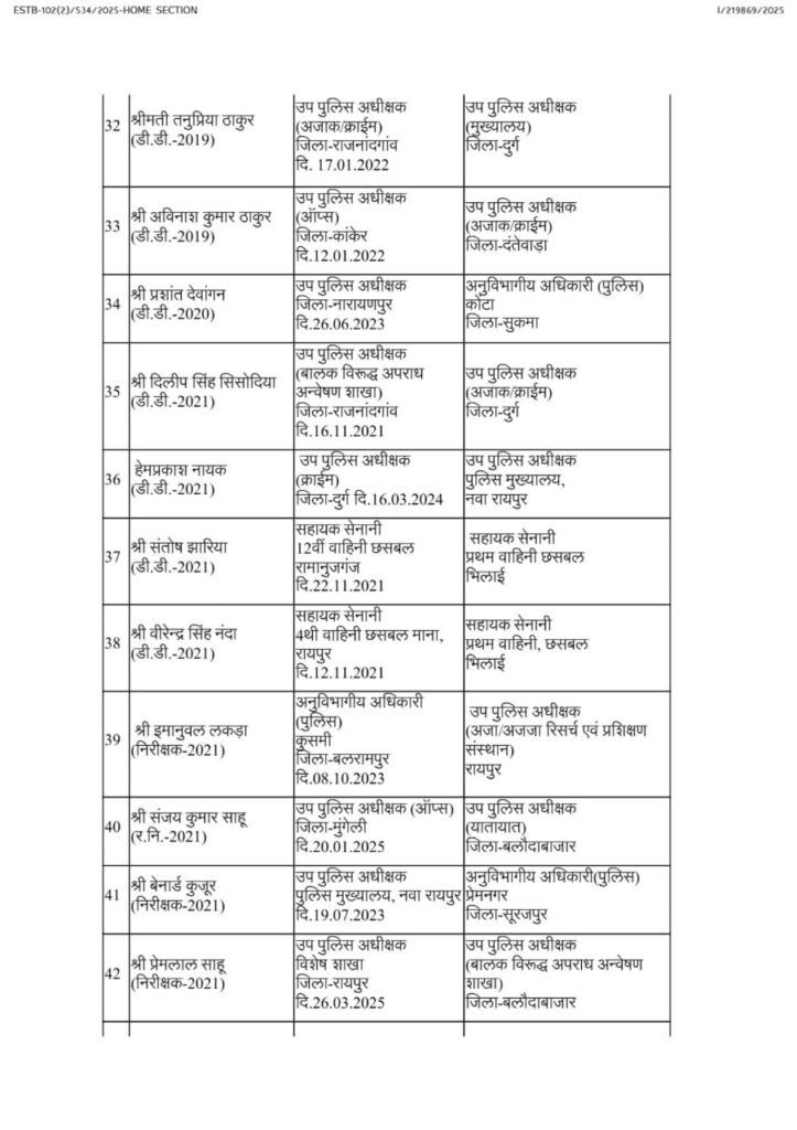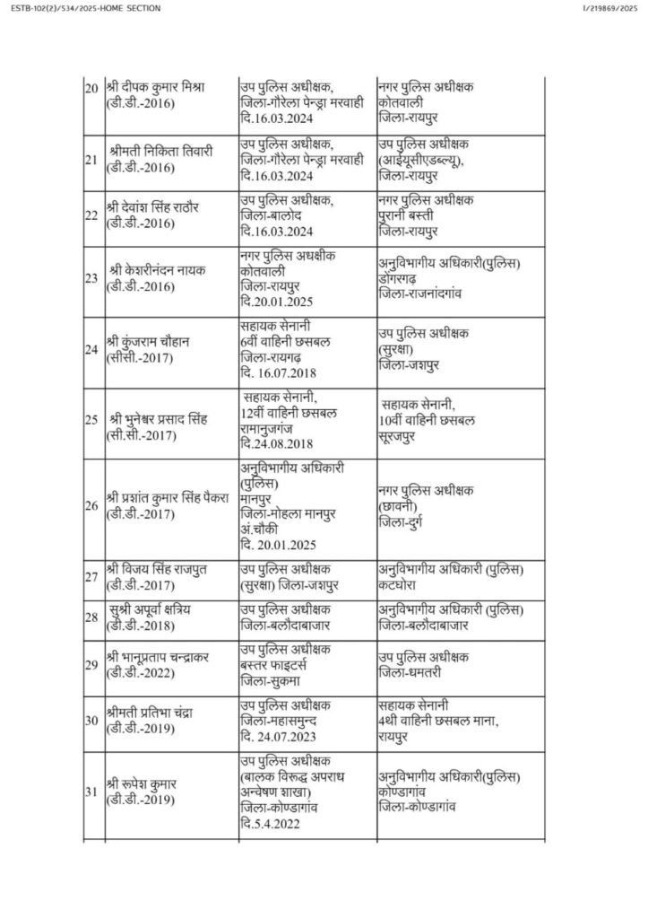 छत्तीसगढ़ में बड़ी संख्या में ASP-DSP के तबादले हुए हैं। राज्य सरकार ने नए साल से पहले 95 पुलिस अधिकारियों को इधर से उधर किया हैं।