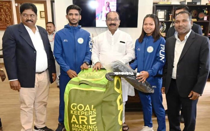रायपुर : उप मुख्यमंत्री अरुण साव ने नेशनल सेंटर ऑफ एक्सीलेंस में परफॉर्मेंस असेसमेंट के लिए चयनित खिलाड़ियों को दिए हॉकी किट
