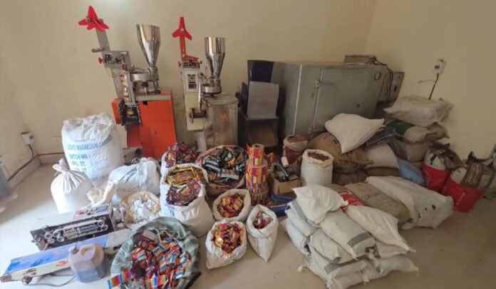 एमपी के इंदौर में नकली पान मसाला बनाने वाले एक कारखाने पर कार्रवाई की गई है। पुलिस ने मौके से भारी मात्रा में मसाला बनाने का सामान जब्त किया है। कई तरह की इलेक्ट्रॉनिक मशीन भी बरामद की गई है। मुंबई के रहने वाले कारोबारी को भी पकड़ा गया है। पुलिस ने मामले में तीन लोगों को आरोपी बनाया है। बताया जा रहा है कि यह सभी घर पर ब्रांडेड कंपनी के पान मसाले बना रहे थे।