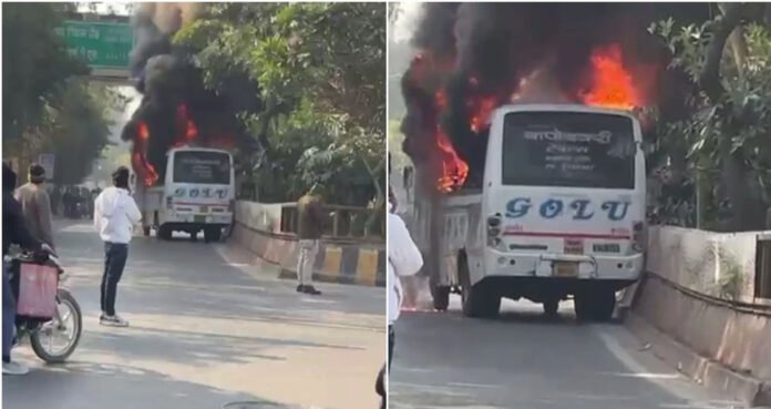 इंदौर के पटेल ब्रिज के नीचे बुधवार सुबह विधायक गोलू शुक्ला की बस में अचानक आग लग गई। आग लगने से मौके पर अफरा-तफरी मच गई। सूचना मिलने के बाद दमकल की गाड़ी को मौके पर बुलाया गया। विधायक गोलू शुक्ला के परिवार की ट्रेवर्ल्स एजेंसी की बस ने एक बाइक सवार को टक्कर मार दी। वह गंभीर रुप से घायल हुआ है। इसके बाद भीड़ ने बस को आग के हवाले कर दिया।