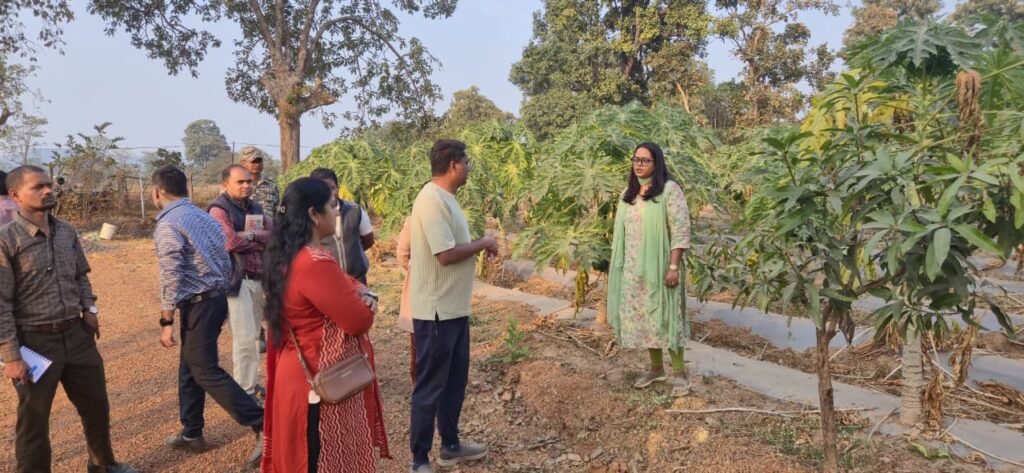 कलेक्टर प्रजापति उद्यानिकी विभाग के हितग्राही व्यास पिस्दा के खेत में भी पहुंचीं। उन्होंने खेत में लगी फसलों का अवलोकन कर जानकारी ली। कृषक पिस्दा ने बताया कि उन्नत किस्म के पत्ता गोभी एवं टमाटर की खेती से उन्हें अच्छी आय प्राप्त हुई है। इसी प्रकार ग्राम भटगांव के कृषक सुभाकार के बागवानी क्षेत्र का भी कलेक्टर ने अवलोकन किया। कृषक ने बताया कि उन्होंने रेड लेडी पपीता की खेती की है। साथ ही लाख पालन के संबंध में किए गए प्रयोगों की जानकारी भी दी। उन्होंने बताया कि वर्तमान में वे ऑयल पाम के पौधों के रोपण हेतु खेत तैयार कर रहे हैं तथा शीघ्र ही पौधारोपण किया जाएगा। कृषक सुभाकार ने बताया कि उन्हें खेती में विशेष रुचि है तथा वे निरंतर नए-नए प्रयोग करते रहते हैं। इससे न केवल उनकी आय में वृद्धि हो रही है, बल्कि उनके खेत में कार्य करने वाले मजदूरों को भी उन्नत कृषि तकनीकों की जानकारी मिल रही है, जिससे वे भी लाभान्वित हो रहे हैं। उन्होंने शासकीय उद्यान रोपणी खडग़ांव में किए नवाचार एवं कार्यों का अवलोकन भी किया।