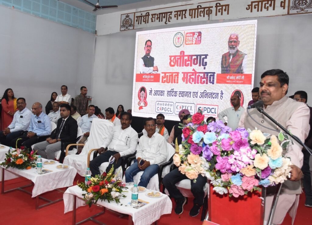 स्कूल शिक्षा मंत्री गजेन्द्र यादव ने कहा कि छत्तीसगढ़ राज्य की स्थापना के 25 वर्ष पूरे हुए हैं। उन्होंने कहा कि छत्तीसगढ़ राज्य बनने के पश्चात यहां तेजी से विकास हुआ है। ऊर्जा के क्षेत्र में प्रदेश में सर्वाधिक विकास हुआ है। उन्होंने बताया कि अविभाजित छत्तीसगढ़ में लगभग 56 हजार उपभोक्ता प्रदेश में थे। वर्तमान में 8 लाख से अधिक किसान उपभोक्ताओं के पास कृषि पंप है। छत्तीसगढ़ बनने के बाद लोगों के जीवन में विकास हुआ है। छत्तीसगढ़ विद्युत वितरण कंपनी द्वारा गांव-गांव में 8 लाख से अधिक कृषि पंपों की स्थापना की गई है। प्रदेश में अलग-अलग प्रकार के सबमर्सिबल की स्थापना की गई है। उन्होंने कहा कि सर्वाधिक मजरा-टोलो में विद्युत पहुंचाने का कार्य किया गया है। उन्होंने कहा कि छत्तीसगढ़ सरकार लगातार ऊर्जा के क्षेत्र के साथ नागरिकों के जीवन को रोशन कर रही है। छत्तीसगढ़ में कृषि बहुत आगे बढ़ा है। बिजली की पर्याप्त उपलब्धता के कारण उद्योग भी बढ़े है। इसके साथ ही छत्तीसगढ़ का चहुमुंखी विकास हुआ है।