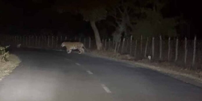 बीती रात 5 फरवरी को शिक्षक योगेश बिसेन परिवार सहित अमरकंटक से वापस लौट रहे थे, इसी दौरान रास्ते मे एक बड़े जानवर बाघ को देख कर टिठक गए। उन्होंने तत्काल अपना फ़ोन निकालकर इस बाघ का वीडियो बना लिया। इस बाघ के आसपास एक सियार भी था। माना जा रहा है कि अचानक मार्ग में बाघों की संख्या बढ़ने के कारण नए इलाके की तलाश में बाघ यहां पहुंच गया होगा।