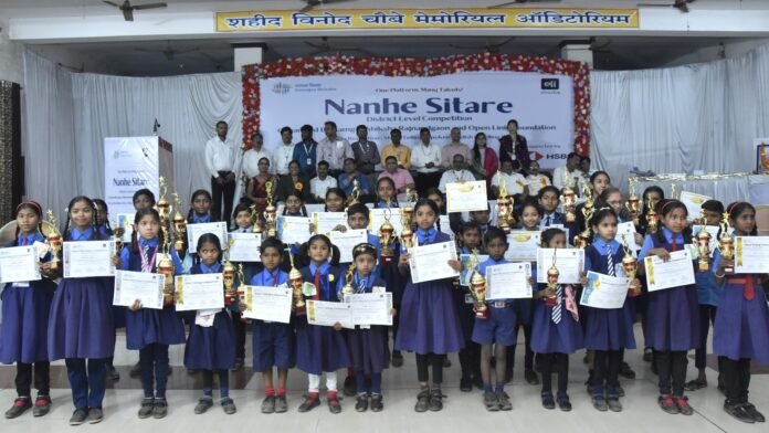 राजनांदगांव। नन्हे सितारे कार्यक्रम का समापन समारोह डॉ. बल्देवप्रसार मिश्र शासकीय उच्चतर माध्यमिक विद्यालय राजनांदगांव के सभागार में बड़े उत्साह और उमंग के साथ आयोजित किया गया। इस कार्यक्रम का आयोजन जिला प्रशासन राजनांदगांव, एचएसबीसी तथा ओपन लिंक्स फाउंडेशन के संयुक्त सहयोग से किया गया। कार्यक्रम में शिक्षा विभाग के वरिष्ठ अधिकारी एवं अन्य गणमान्य अतिथि उपस्थित रहे।