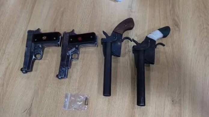 जानकारी के अनुसार, शहर के पटरी पार क्षेत्र के शंकरपुर वार्ड क्रमांक 9 स्थित कब्रिस्तान के पास गुरुवार को शाम करीब 7 बजे चीखली थाना पुलिस को मुखबिर से सूचना मिली कि कुछ लोग पिस्तौल व देशी कट्टा लेकर लोगों को लहराकर डरा-धमका रहे हैं। तभी पुलिस ने घेराबंदी कर मौके से 7 लोगों को हिरासत में लिया। पकड़े गए आरोपियों की तलाशी में पुलिस को दो नग देशी कट्टा, दो नग पिस्टल और एक जिंदा कारतूस मिला है। पुलिस ने आगे बताया कि हिरासत में आए आरोपियों के खिलाफ पूर्व से कई आपराधिक मामले दर्ज हैं।