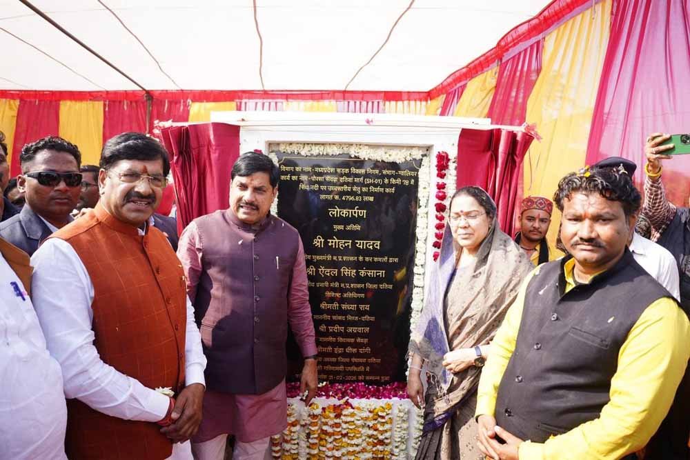मुख्यमंत्री डॉ. यादव ने दतिया जिले के लिए कुल 529 करोड़ रूपए के 71 विकास कार्यों का लोकार्पण और भूमि-पूजन किया। इसमें 299 करोड़ 32 लाख रूपए की लागत से 50 विकास कार्यों का लोकार्पण तथा 230 करोड़ 44 लाख रूपए की लागत से 21 नए विकास कार्यों का भूमि-पूजन शामिल है। मुख्यमंत्री डॉ. यादव ने कहा कि ये सभी सौगातें जिले की अधोसंरचना, शिक्षा, स्वास्थ्य, पेयजल और ग्रामीण विकास को नई दिशा प्रदान करेंगी।