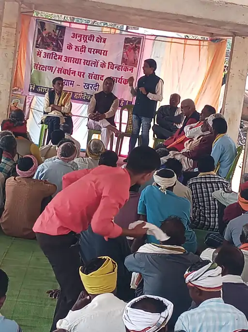 अंबागढ़ चौकी , जिला मोहला-मानपुर-अंबागढ़ चौकी के ग्राम खरदी में अनुसूचित क्षेत्रों की रूढ़ी परंपराओं व आदिम आस्था से जुड़े प्राचीन स्थलों के चिन्हांकन, प्रबंधन व संवर्धन विषय पर संवाद कार्यक्रम का आयोजन किया गया। कार्यक्रम का उद्देश्य आदिवासी समाज की आस्था, संस्कृति और ऐतिहासिक धरोहरों को संरक्षित करते हुए भावी पीढ़ियों तक सुरक्षित रूप से पहुंचाना रहा।