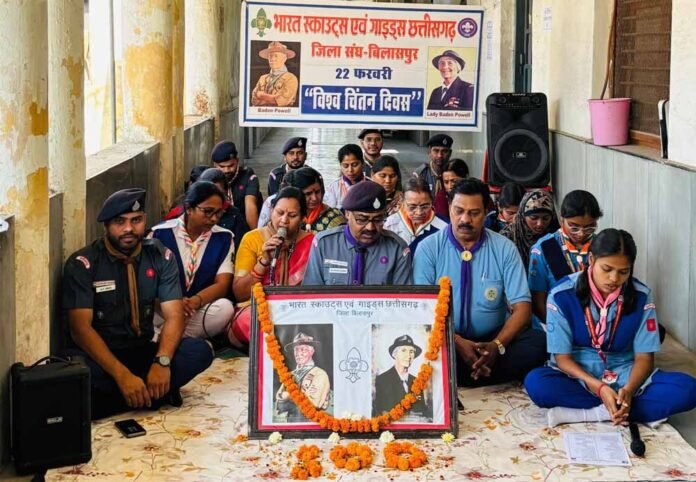 भारत स्काउट एवं गाइड्स जिला संघ बिलासपुर द्वारा विश्व चिंतन दिवस के 100 वर्ष पूर्ण होने पर एक गरिमामय एवं प्रेरणादायी कार्यक्रम का आयोजन किया गया। कार्यक्रम ओल्ड कंपोजिट बिल्डिंग, डीईओ कार्यालय स्थित स्काउट विभाग कक्ष क्रमांक-16 के प्रांगण में संपन्न हुआ, जिसमें राज्य एवं जिला स्तर के पदाधिकारियों सहित जिले भर के स्काउट-गाइड, रोवर्स और रेंजर्स ने उत्साहपूर्वक भाग लिया।