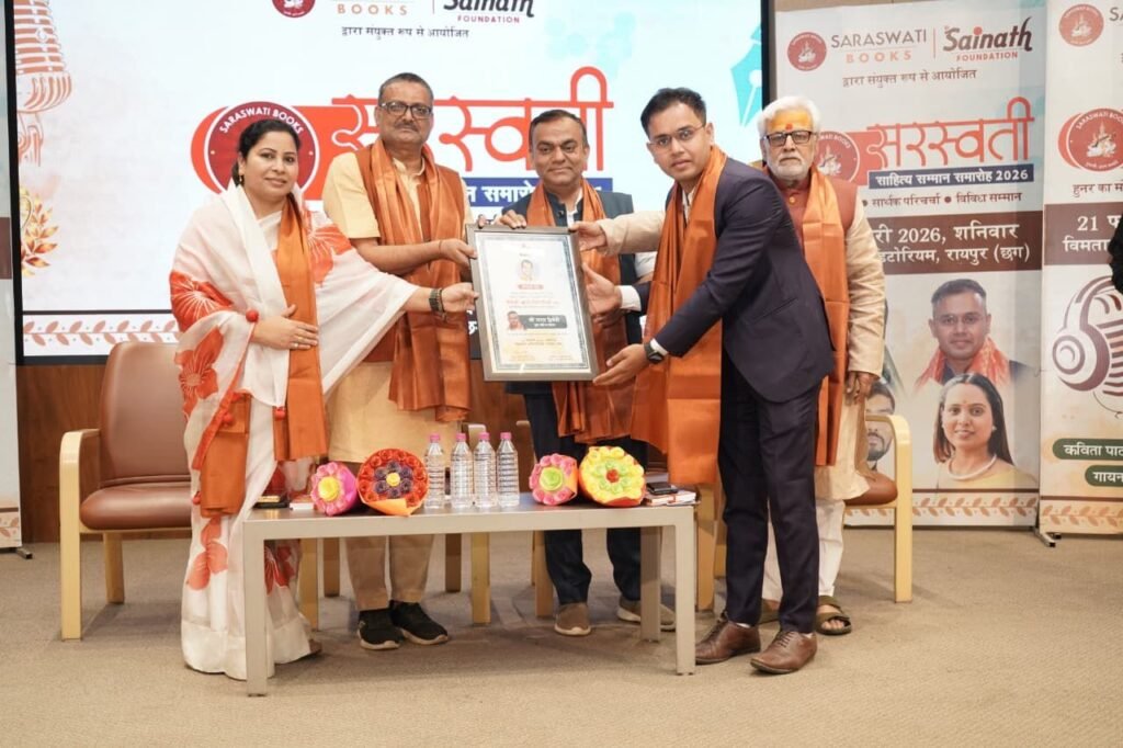 साईनाथ फाउंडेशन द्वारा नेताजी आनंद सिंघानिया की पावन स्मृति में विगत सात वर्षों से विभिन्न साहित्यिक सम्मान प्रदान किए जा रहे हैं, इसी कड़ी में इस वर्ष भी सरस्वती बुक्स के संयुक्त तत्वावधान में 21 फरवरी 2026 दिन शनिवार को राजधानी रायपुर स्थित विमतारा ऑडिटोरियम में सरस्वती साहित्य सम्मान समारोह का आयोजन हुआ ।
