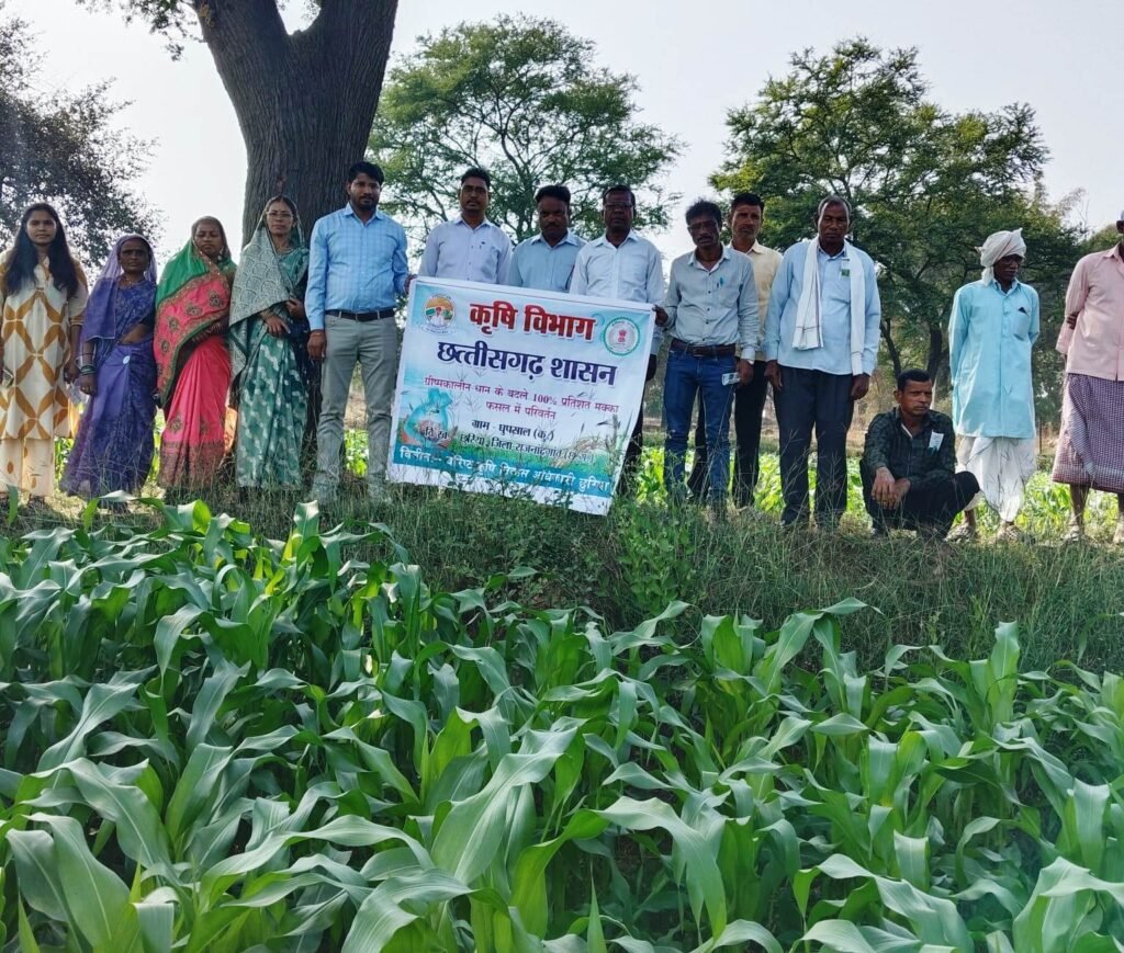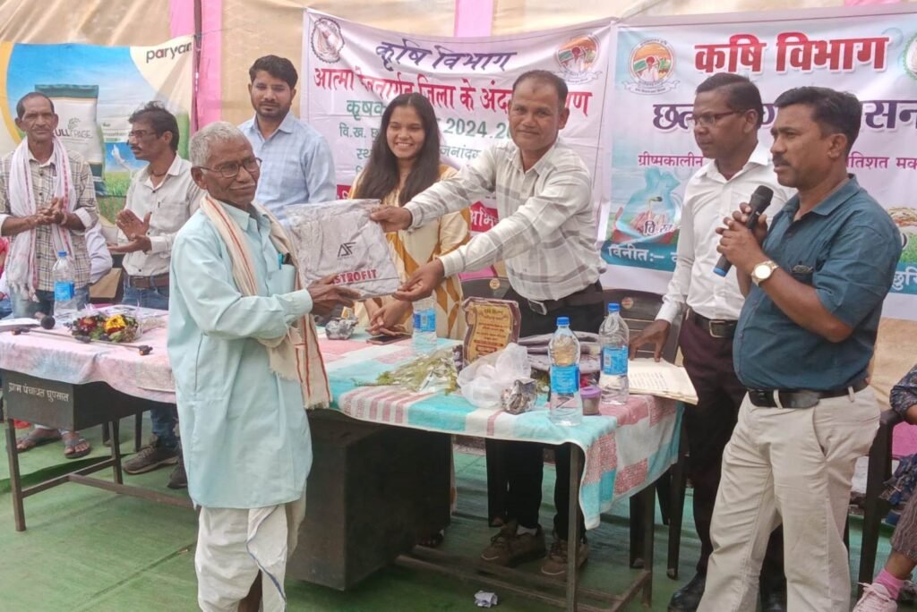 राजनांदगांव । कृषि प्रौद्योगिकी प्रबंधन अभिकरण अंतर्गत छुरिया विकासखंड के ग्राम घुपसाल में जिले के अंदर प्रशिक्षण कार्यक्रम का आयोजन किया गया। कार्यक्रम में ग्रीष्मकालीन धान के बदले 100 प्रतिशत मक्का फसल में परिवर्तन कर जल संवर्धन फसल परिवर्तन उत्कृष्ट कार्य के लिए किसानों को सम्मानित किया गया। इस अवसर पर जनपद पंचायत सदस्य ओमप्रकाश चन्द्रवंशी, ग्राम पंचायत सरपंच नरेश शुक्ला, क्षेत्रीय ग्रामीण कृषि विस्तार अधिकारी सुदेश पटेल, कृषि विभाग के गौरीशंकर सहीश, डॉ. विकास सिंह, एबीस कंपनी के एक्जिक्यूटिव मैनेजर, प्रयाण टेरेटरी दुर्ग के मैनेजर सहित अधिकारी-कर्मचारी एवं बड़ी संख्या में ग्रामीण उपस्थित थे।