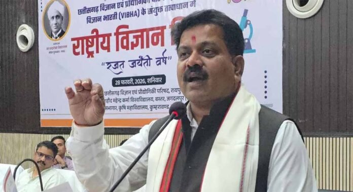 राष्ट्रीय विज्ञान दिवस के अवसर पर जगदलपुर में आयोजित कार्यक्रम में उप मुख्यमंत्री विजय शर्मा मुख्य अतिथि के रूप में शामिल हुए। यह समारोह शहीद महेंद्र कर्मा विश्वविद्यालय, छत्तीसगढ़ विज्ञान एवं प्रौद्योगिकी परिषद तथा विज्ञान भारती के संयुक्त तत्वाधान में कृषि महाविद्यालय के सभागार में आयोजित किया गया। कार्यक्रम में विज्ञान के क्षेत्र में नवाचार, शोध एवं वैज्ञानिक सोच को बढ़ावा देने पर विशेष जोर दिया गया।