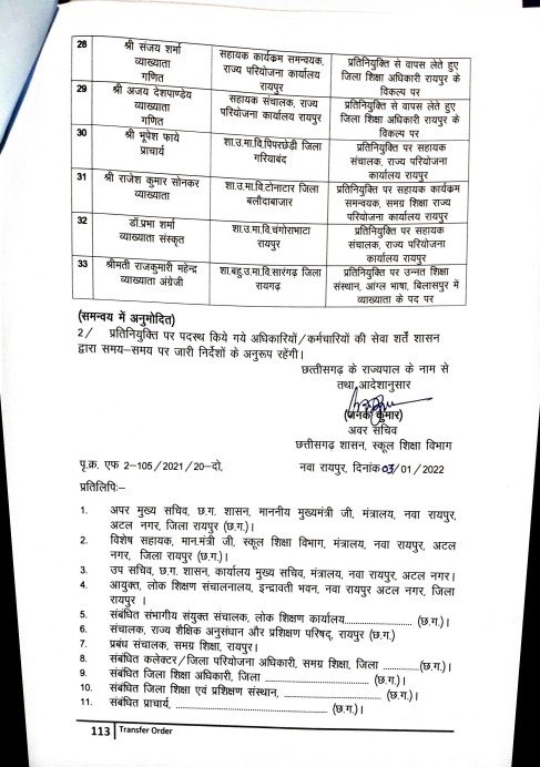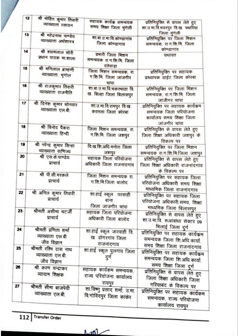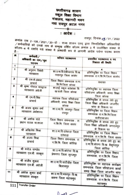 छत्तीसगढ़ राजनांदगांव जिला छत्तीसगढ़ की बड़ी खबर : 33 व्याख्याताओं के हुए तबादले, यहां देखे पूरी लिस्ट Deep Jagriti January 3, 2022 (Last updated: January 3, 2022) 0 comments रायपुर,| नए साल के शुरू होते ही अब अधिकारियों के तबादलों का सिलसिला भी शुरू हो गया है। राज्य सरकार ने आज देर शाम स्कूल शिक्षा विभाग के प्राचार्यों, व्याख्याताओंं के तबादले किए गए हैं। इस आशय के आदेश जारी कर दिया गया है।आदेश इस प्रकार है- About the Author Deep Jagriti Administrator Visit Website View All Posts Post navigation Previous: राजनांदगांव : दृष्टिहीनों के मसीहा सरलुईब्रेल जंयती के अवसर पर संस्कार श्रद्धांजलि के तत्वावधान में दो दिवसीय प्रदेश स्तरीय महासम्मेलनNext: राजनांदगांव: एफसीआई ठेकेदार की मनमानी के खिलाफ हमाल हुए लामबंद Leave a Reply Cancel replyYour email address will not be published. Required fields are marked *Comment * Name * Email * Website Save my name, email, and website in this browser for the next time I comment. Related Stories छत्तीसगढ़ शहर को मिलेगा नया सब्जी बाजार: 3.40 करोड़ रुपए की परियोजना का भूमिपूजन Admin March 14, 2026 0 छत्तीसगढ़ “विजन 2030” विषय पर एक दिवसीय कार्यशाला आयोजित Admin March 14, 2026 0 छत्तीसगढ़ जल जीवन मिशन की प्रगति, क्रियान्वयन तथा नल कनेक्शनों की स्थिति पर हुई चर्चा Admin March 14, 2026 0