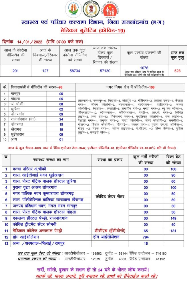 छत्तीसगढ़ राजनांदगांव जिला राजनांदगांंव: शहर सहित जिले में मिले 201 कोरोना संक्रमित मरीज Deep Jagriti January 14, 2022 1 minute read 0 comments coro About the Author Deep Jagriti Administrator Visit Website View All Posts Post navigation Previous: बांधाबाजार : फ्रंटलाईन वर्करों को तीसरी डोज का टीका लगाNext: राजनांदगांव : महाविद्यालय में विश्व हिन्दी दिवस कार्यक्रम आयोजित Leave a Reply Cancel replyYour email address will not be published. Required fields are marked *Comment * Name * Email * Website Save my name, email, and website in this browser for the next time I comment. Related Stories छत्तीसगढ़ शहर को मिलेगा नया सब्जी बाजार: 3.40 करोड़ रुपए की परियोजना का भूमिपूजन Admin March 14, 2026 0 छत्तीसगढ़ “विजन 2030” विषय पर एक दिवसीय कार्यशाला आयोजित Admin March 14, 2026 0 छत्तीसगढ़ जल जीवन मिशन की प्रगति, क्रियान्वयन तथा नल कनेक्शनों की स्थिति पर हुई चर्चा Admin March 14, 2026 0