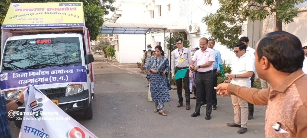 स्वीप मतदाता जागरूकता रथ ‘‘ मतदान एक्सप्रेस ‘‘ को आज निर्वाचन प्रेक्षक शांतनु पी. गोटमारे, आई.ए.एस. एवं कलेक्टर राजनांदगॉव द्वारा हरी झंडी दिखाकर रवाना किया गया। यह प्रचार एक्सप्रेस वाहन खैरागढ विधानसभा क्षेत्र के पूर्व चुनावों में कम मतदान वाले ग्रामीण व नगरीय क्षेत्रों सहित अन्य क्षेत्रों में जाकर भ्रमण करेगा।