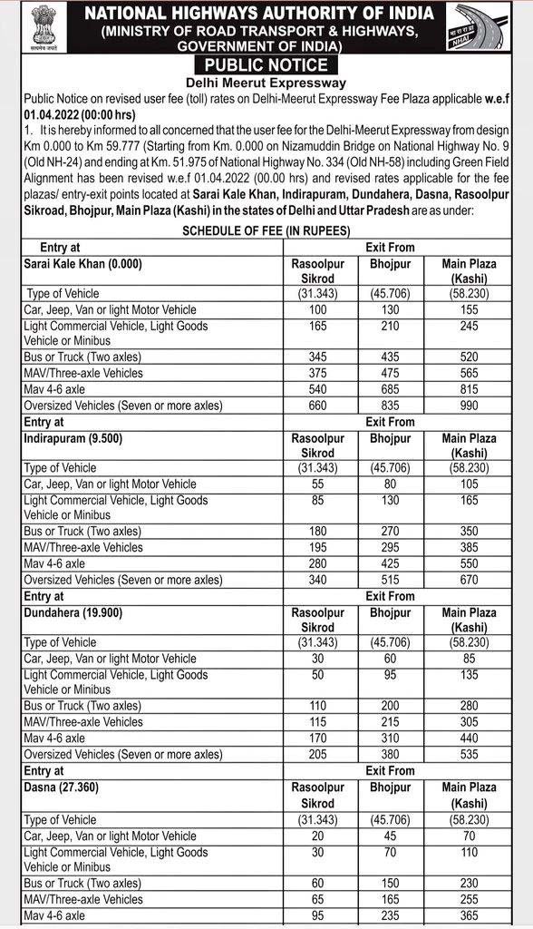 एक्सप्रेस-वे की बात करें तो सराय काले खां से शुरू होकर काशी टोल प्लाजा तक कार और जीप के लिए पहले जहां 140 रुपये देने होते थे, वहीं अब इसके लिए 155 रुपये देने होंगे. सराय काले खां से ही रसूलपुर सिकरोड प्लाजा पर अब वाहन चालकों को 100 देने होंगे, वहीं भोजपुर जानें के लिए 130 रुपये चुकाने होंगे. कई तरह के वाहनों के लिए यहां 10-15 फीसदी तक टोल टैक्स बढ़ाया गया है.