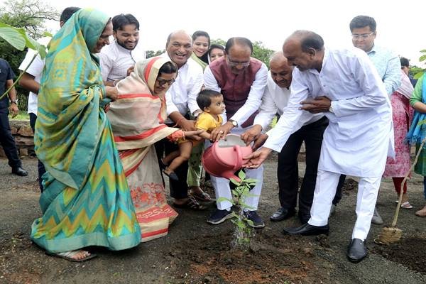 मुख्यमंत्री चौहान के साथ श्रीमती अमिता त्रिवेदी ने अपने पिता श्रद्धेय मुरलीधर त्रिवेदी की 100वीं जयंती पर पौध-रोपण किया। डॉ. अनुजा पाठक, सुश्री सीमा त्रिवेदी और पवन साथ थे। मुख्यमंत्री चौहान के साथ राष्ट्रीय सरपंच संघ के अध्यक्ष जयराम पलसानिया ने पौधा लगाया, सुश्री पल्लवी जाट साथ थीं।