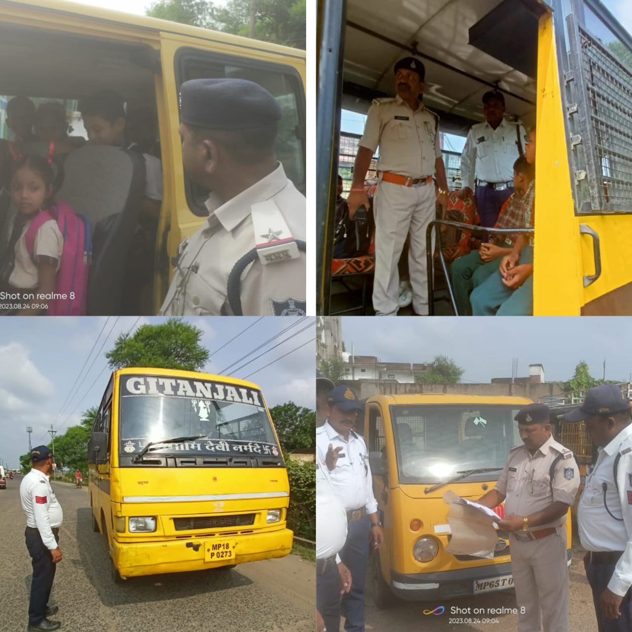 उपरोक्त तारतम्य में जिला अनूपपुर में पुलिस अधीक्षक श्री जीतेंद्र सिंह पंवार, अतिरिक्त पुलिस अधीक्षक श्री शिवकुमार सिंह के मार्गदर्शन में एवं अनुविभागीय अधिकारी श्री सुमित केरकेट्टा के नेतृत्व में जिले के मुख्य स्कूल कॉलेजों में यातायात नियमों के प्रति जागरूकता के उद्देश्य से थाना यातायात एवं जिले के समस्त थानों के द्वारा वहां उपस्थित विद्यार्थियों एवं शिक्षकों को यातायात नियमों के पालन हेतु प्रेरित किया जा रहा है एवं सड़क पर दोपहिया वाहन चलाते समय हेलमेट की अनिवार्यता एवं चार पहिया वाहन चलाते समय सीट बेल्ट धारण अनिवार्य रूप से करने हेतु प्रेरित किया जा रहा है, तथा अभियान के पालन के संबंध में फ्लेक्स बैनर पंपलेट एवं नुक्कड़ नाटक आदि के माध्यम से प्रचार प्रसार किया जा रहा है, इसी क्रम में जिले मे सीट बेल्ट एवं हेलमेट धारणा न करने वाले वाहन चालको के विरुद्ध विशेष अभियान के दौरान दिनांक 07/07/2023 से दिनांक 25/08/2023 तक यातायात नियमों का उल्लंघन करने वाले , 2916 वाहन चालकों के विरुद्ध चालानी कार्यवाही करते हुए 991400 रुपए समन शुल्क वसूला गया कार्यवाही निरंतर जारी है |