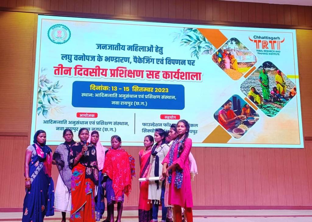 जनजातीय अनुसंधान एवं प्रशिक्षण संस्थान,रायपुर एवं फाउंडेशन फॉर इकॉलोजी सिक्योर्टी के साथ साझा 13 से 15 सितंबर तक तीन दिवसीय प्रशिक्षण सह कार्यशाला आयोजित किया गया है। जिसमें कबीरधाम जिले के विशेष संरक्षित जनजाति बैगा महिला लीडर ने प्रस्तुतीकरण करते हुए विकासखंड बोड़ला के बैगा बाहुल्य क्षेत्र में किए जा रहे जलवायु परिवर्तन अनुकूलन पर्यावरणीय कृषि पद्धति से टिकाऊ आजीविका, स्वास्थ्य एवं पोषण के सुधार अनुभवों को साझा किया। पर्यावरणीय खेती के संदर्भ में बताया कि बीज चयन, बीज उपचार, कतार मिश्रित खेती एवं किचन गार्डन की जानकारी दी गई।