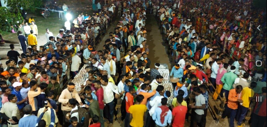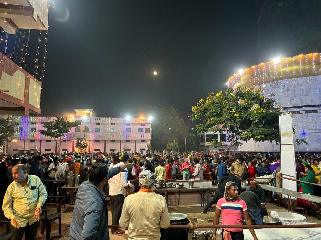 ० चंद्रग्रहण के बावजूद रातभर बर्फानी आश्रम में लगा रहा श्रद्धालुओं का मेला राजनांदगांव मानव सेवा व जनकल्याण के लिए अंचल सहित देशभर में पहचान बना चुकी बर्फानी सेवाश्रम समिति द्वारा अपने आशीर्वादक राष्ट्रीय संत श्री श्री 1011 योगाधिराज ब्रम्हर्षि बर्फानी दादा जी के आशीर्वाद से संस्था द्वारा संचालित गर्भगृह में विराजमान मां पाताल भैरवी राज राजेश्वरी त्रिपुर सुंदरी दश महाविद्या द्वादश ज्योर्तिलिंग शिव शक्ति सिद्धपीठ बर्फानी आश्रम में शरद पूर्णिमा 28 अक्टूबर शनिवार की रात्रि में हजारों स्वांस, दमा व अस्थमा पीड़ितों को जड़ी बुटीयुक्त खीर प्रसाद का नि:शुल्क वितरण किया गया। जिसमें अंचल सहित देशभर से हजारों की संख्या में पीडित यहां पहुंचे थे। शरद पुर्णिमा पर चंद्रग्रहण होने के कारण संस्था ने इस बार विशेष इंतजाम किये थे।