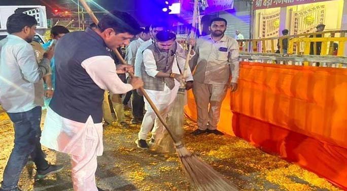 पीएम नरेंद्र मोदी के स्वागत में बरसाए गए फूलों के चलते रोड शो मार्ग पर फूल ही फूल नजर आ रहे थे, जहां रोड शो खत्म होते ही नगर निगम की टीम के साथ खुद महापौर पुष्यमित्र भार्गव ने सफाई के लिए कमान संभालते हुए रोड शो मार्ग पर बिखरे फूलों को झाड़ू से साफ किया।